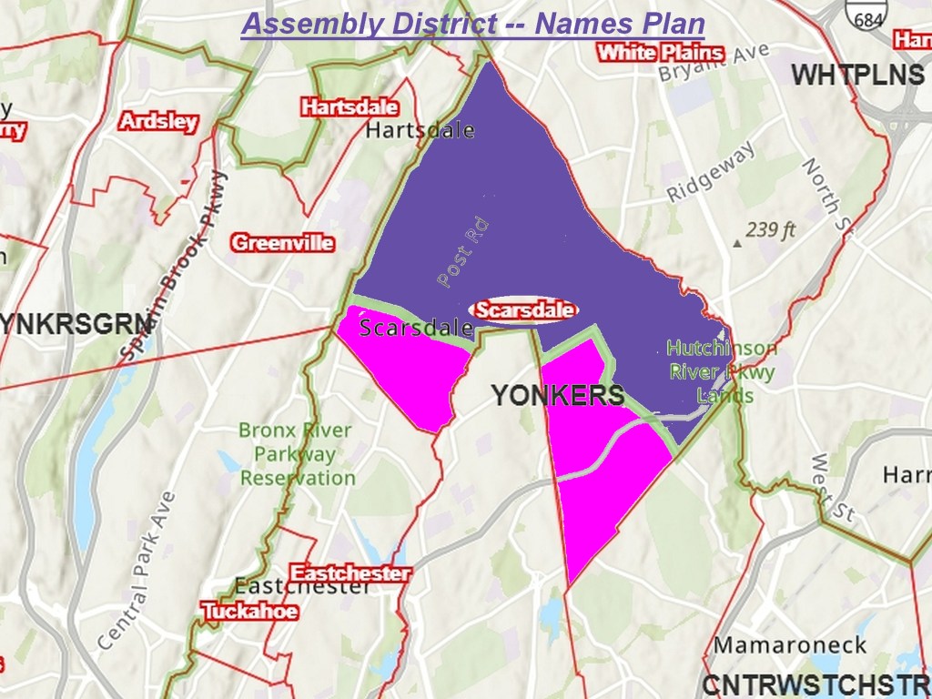 At the IRC hearing on Monday, November 8, 2021, LWVS President Alissa Baum issued a Statement to the Independent Redistricting Committee on behalf of the LWVS Board, expressing disappointment in the redistricting process thus far and urging the IRC to keep Scarsdale intact when redrawing districts. She illustrated her testimony with a poster showing one of the maps proposed by some members of the IRC that had split Scarsdale into two different NYS Assembly Districts. She concluded by commenting that “[t]he Village of Scarsdale, with its strong school system and common interests, deserves the representation of a single legislator in each of the Assembly, Senate, and U.S. Congressional districts. We hope that the Commission takes its charge seriously and listens to the public so that it can draw political boundaries that are in the public’s best interest.”